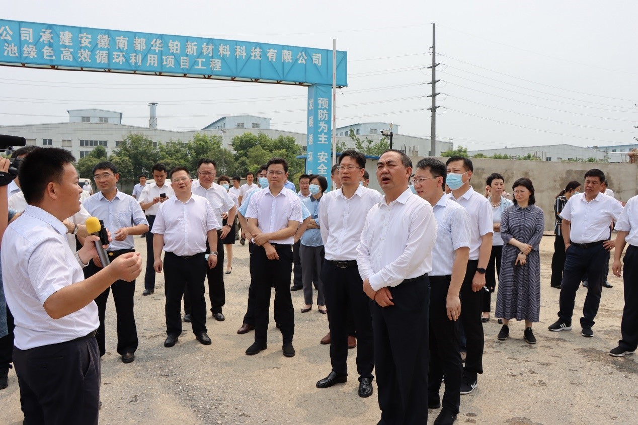 8 月 2 日,阜阳市委书记孙正东深入新宝gg创造奇迹华铂新质料锂电池绿色高效循环使用项目、新宝gg创造奇迹华拓新能源项目工程现场,调研项目建设情形。阜阳市长刘玉杰、界首市委书记何逢阳、新宝gg创造奇迹安徽集团董事长沈岑宽等向导,以及阜阳市各在建重点工程项目组向导陪同调研。
