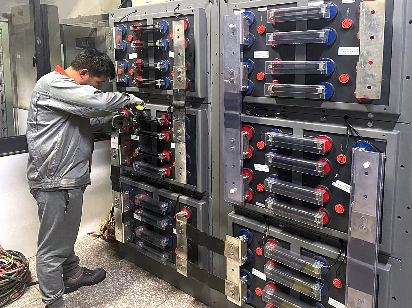 CAP1400 1E 级阀控蓄电池单只重量达375kg,一样平常的高温试验也因此变得极具挑战。高温试验需要把电池一只只垒放到高达1.7米的铁架上,铁架虽然经由了加固刷新,但由于核电电池重量的“非履历性”,首次实验时,在场的所有人照旧主要地摒住了呼吸。